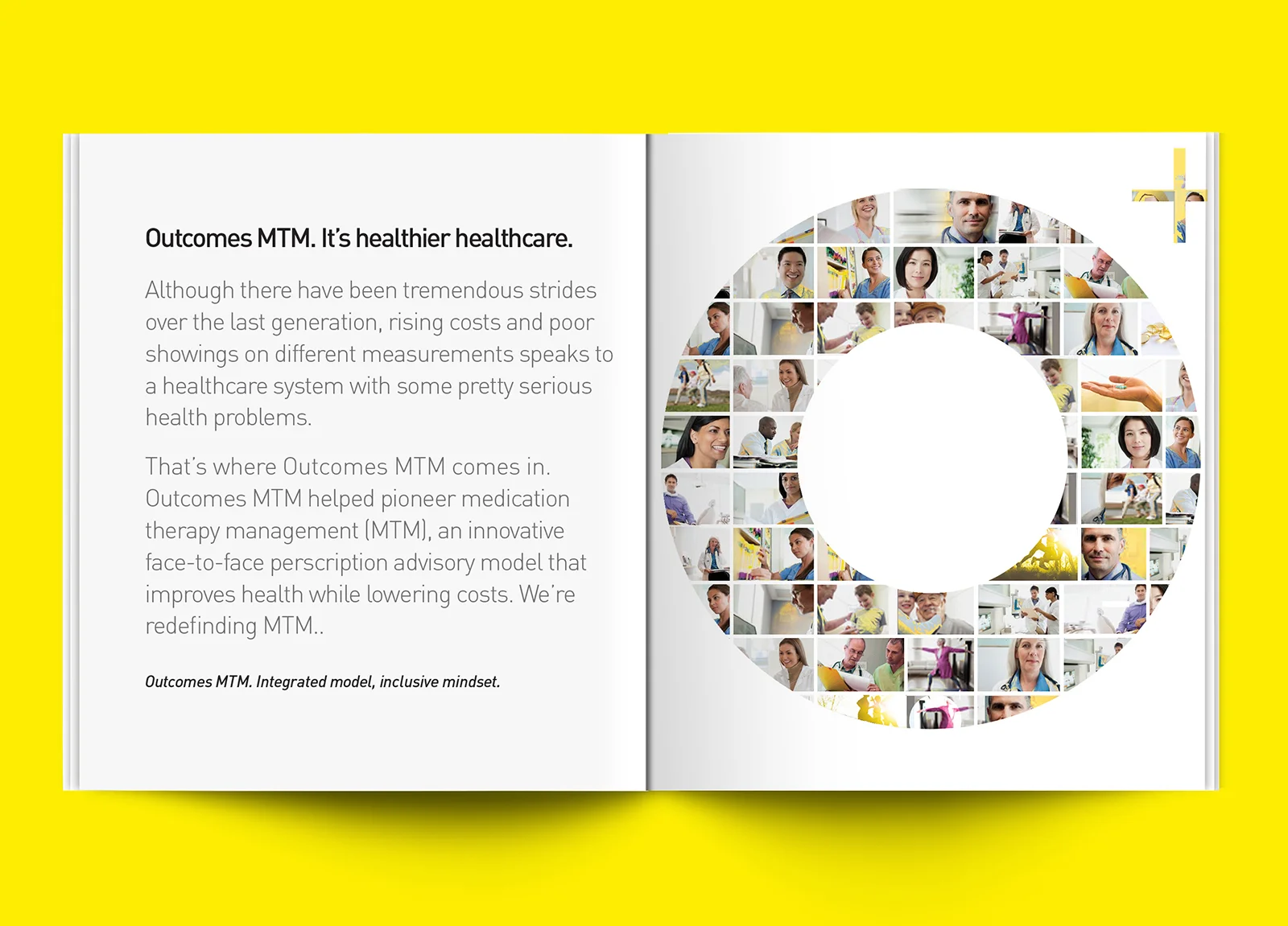 Branding and identity design for OutcomesMTM®, a healthcare company that helps patients manage their medications through face-to-face Personal Pharmacist™ interactions. I designed this while working at HBG in Chicago.