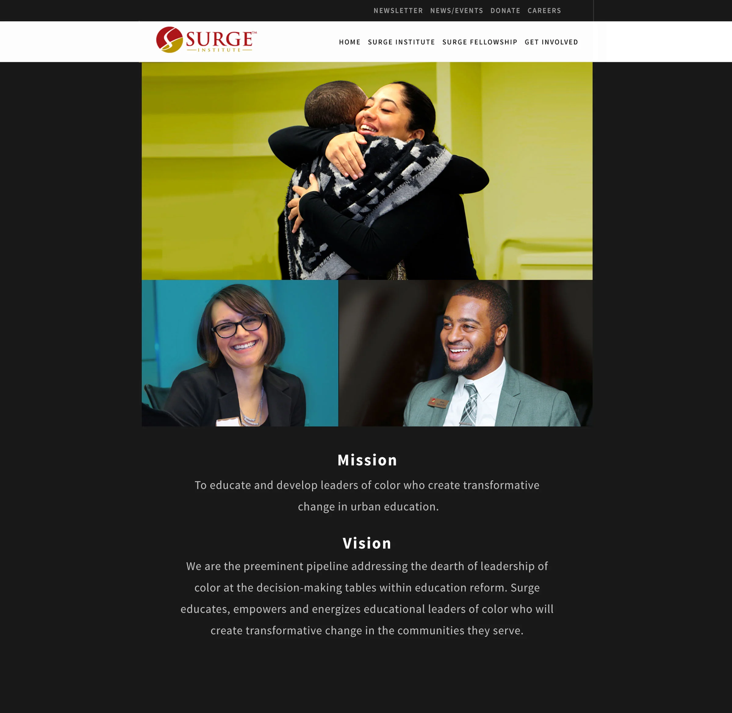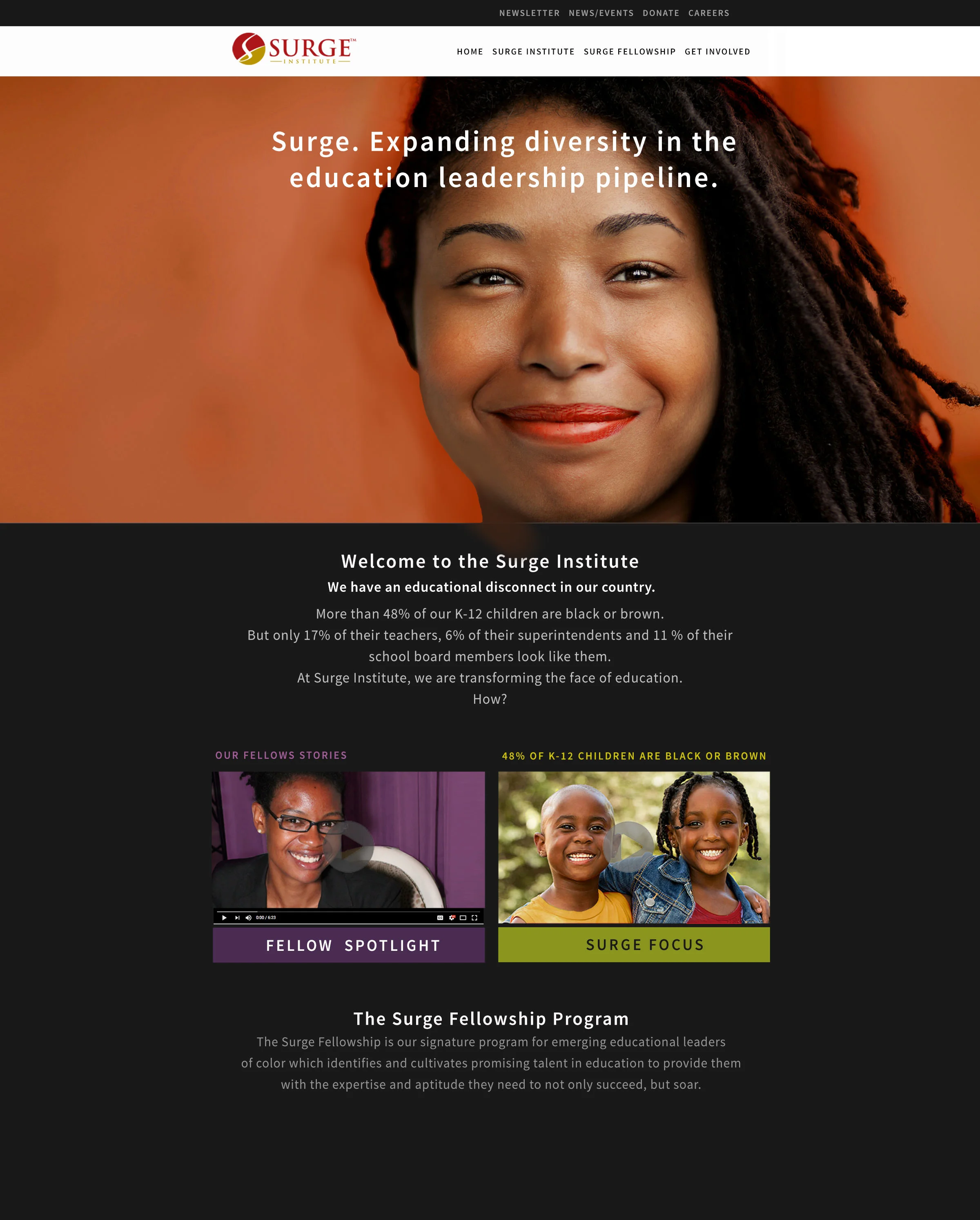 Surge Institute is an non-profit organization that provides expert skills and training to leaders of color in the education system. I designed this site while working at Robert Viola Partners in Chicago.